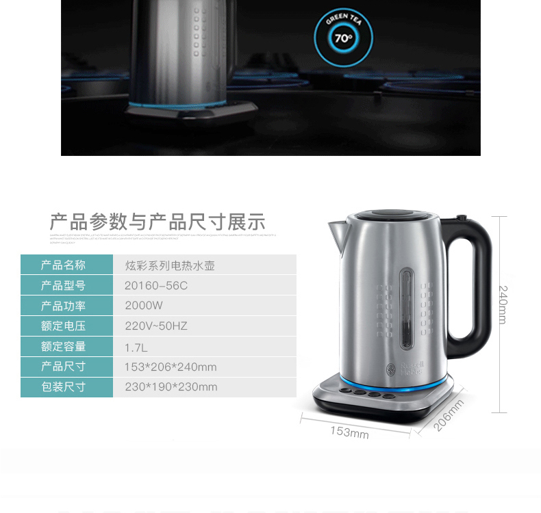 Russell Hobbs 领豪 炫彩电水壶 20160-56C