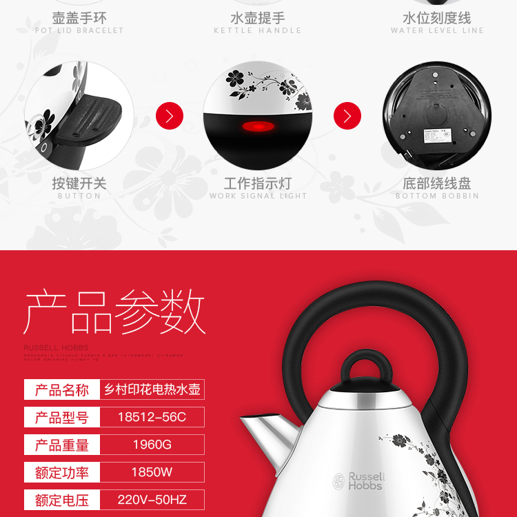 Russell Hobbs 领豪 乡村印花系列电水壶 18512-56C
